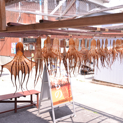 日間賀島は名古屋から60分、高速船で10分の離島です。のんびりと島を散策したり、ぼ~っと空や海を眺めたり、釣りやサイクリング(いこい)!タコの干物造り(かねと商店)等も楽しめます。